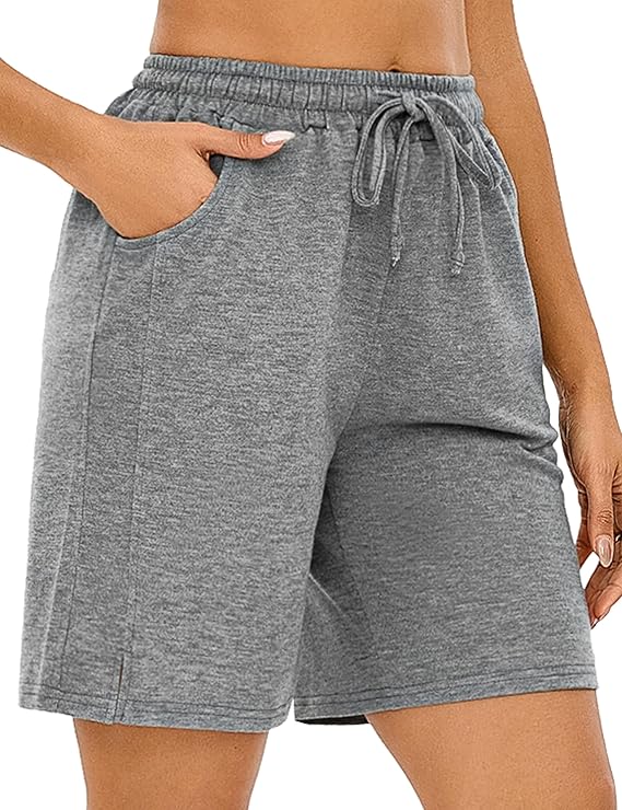 • Drawstring Shorts and Elastic Waistband: The waistband is thick and wide so it doesn’t cut into your waist or the waist roll down. Comfy shorts with pockets fits really well and holds its shape, not to be tight on your butt and have a comfier lounge fit. Pajama shorts for women, bermuda shorts, jersey shorts, cotton short pants, knit shorts