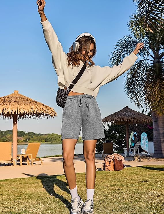 • Material: 65% Cotton, 30% Polyester, 5% Spandex, this sweat shorts for women, soft and comfy, breathable and sweat-absorbing, quick dry, skin-friendly fabric gives women wearing these casual shorts a comfortable experience